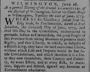 Read the following excerpts from the minutes of the Committees of Safety set up in North Carolina towns and counties in 1775. These excerpts relate to the Committees' goal of enforcing the trade boycott against Britain.